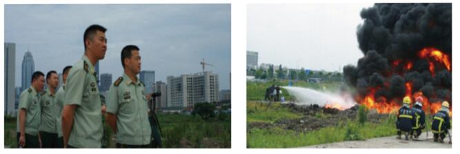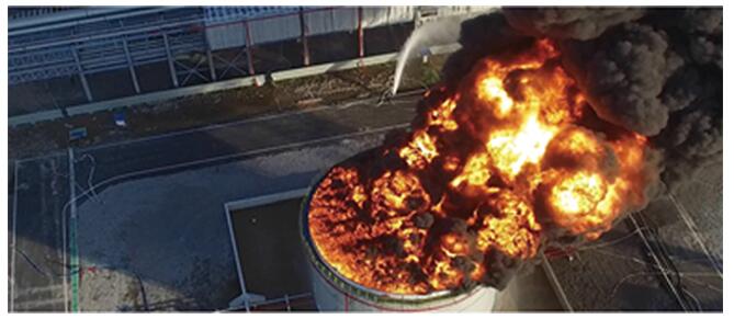 水星实战之甲醇储罐灭火2014年9月14日,江苏常州化工储运公司一个5000吨甲醇储罐爆燃,且威胁周边三座大储罐, 以往灭火剂无能为力,江苏省消防总队亲临现场指挥,紧急调用水星M1植物活性阻燃灭火器迅速扑灭火险,得到消防官兵们的热烈称赞。 |